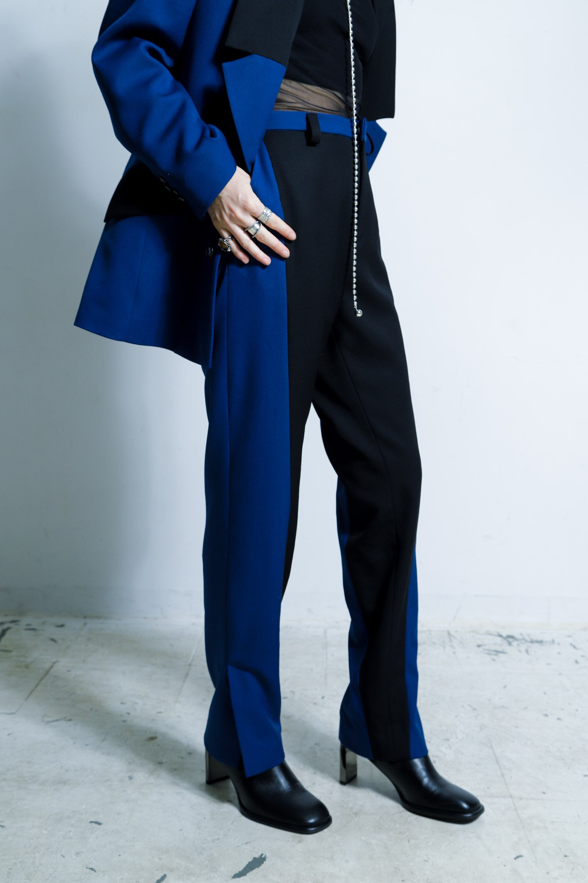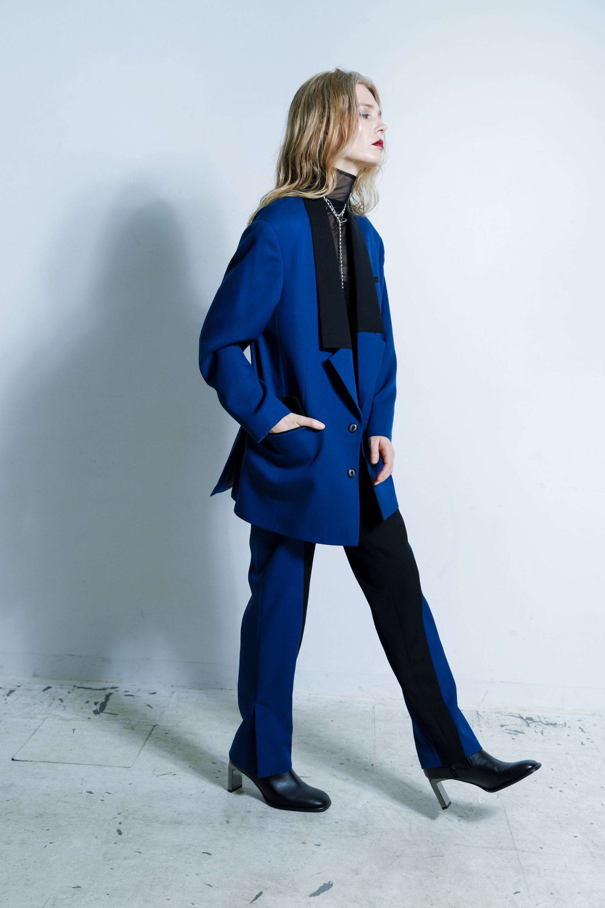 メンズライクなセットアップパンツ。大胆なディテール、カッティングはアグレッシブな印象をだが、計算された切り替えはスタイルアップを可能にする。シック且つクラシカル。確かな技術によってクラシカルモードなセットアップに仕上げている。